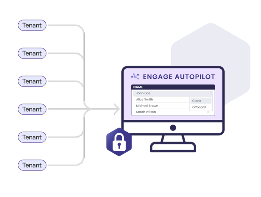 Skip the repetitive setup work. With Engage Autopilot, you can clone settings from existing users and apply pre-set onboarding defaults across all tenants. Whether you’re adding one user or rolling out for a new client, you’ll do it faster, more consistently, and with fewer errors.