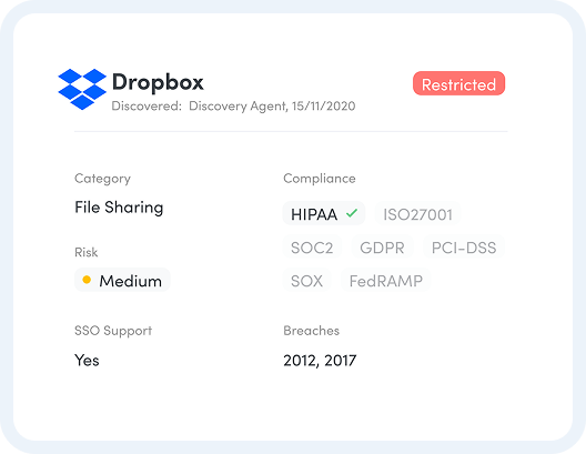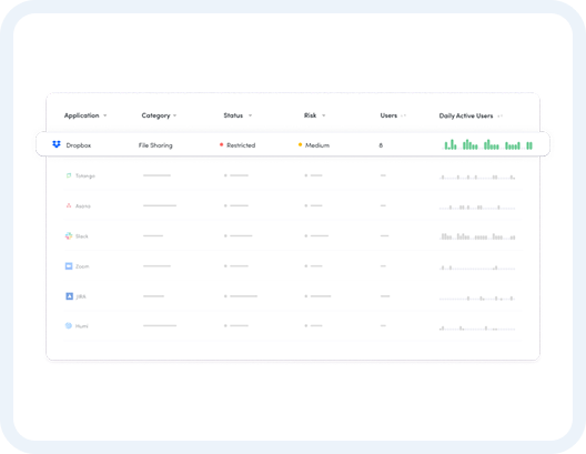 By deploying a small agent on user devices, Augmentt can capture useful metrics regarding every application used in an organization. This information is helpful for cyber insurance, cost analysis, productivity management and for demonstrating compliance to regulatory governing bodies and for compliance reporting.